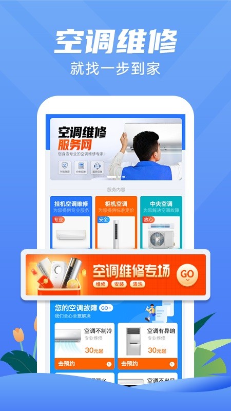 一步到家空调维修全新上线