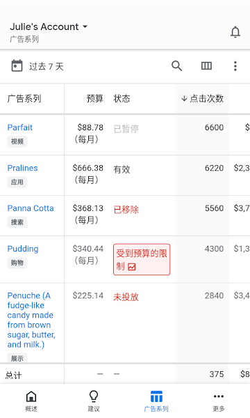 Google Ads 移动应用可让您随时随地掌握广告系列的情况。除了实时监控广告系列外,您还可以查看有助于改善广告效果的高效建议,并轻松快速地采取措施。