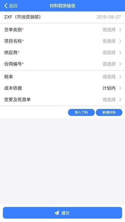 5、到货验收,用户在线就可以对材料进行验收,输入相关信息即可完成验收操作;