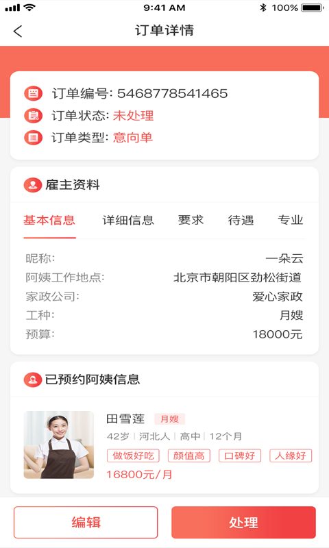 -订单生成,家政阿姨在此找到雇主之后能够在此一键创建订单进行合作签约
