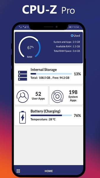 cpuz pro app是专门为了测试手机性能设计的专业软件,上面根据需要测试的内容设置了不一样的测试版块,想要测试什么都可以,全方位的了解自己的爱机,使用起来更加得心应手,获得最佳的操作!