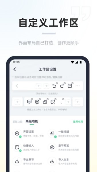 软件还有很多贴心的小细节,比如局部文字标记、码字记录等,这些都很适合需要经常修改和润色的创作工作。新增的智能纠错和休闲拼字功能也很赞,能帮助提高写作效率。我尤其喜欢它的自定义工作区模式,可以自己调整功能键的位置,用起来更顺手。
