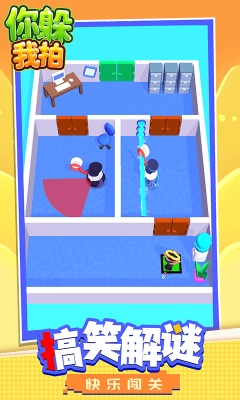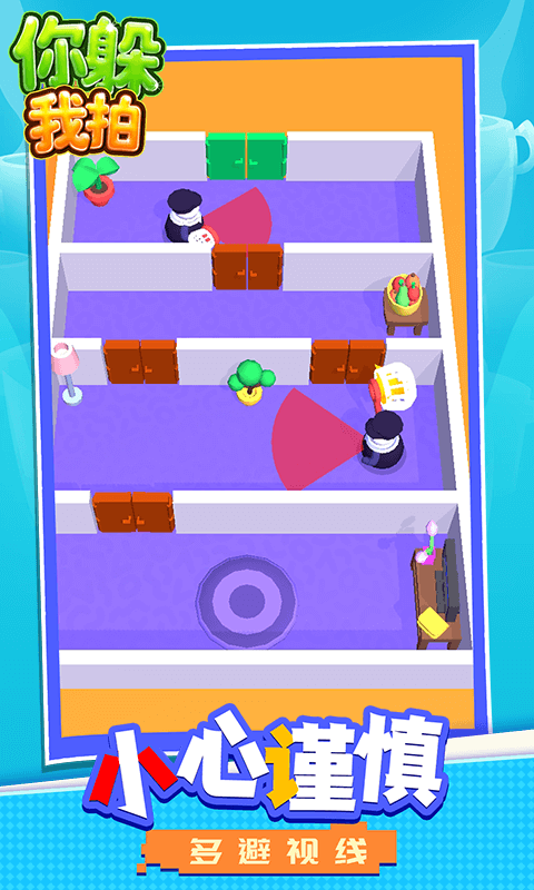 你躲我拍,趣味的躲猫猫小游戏,游戏中玩家需要设法抓住所有的坏人,游戏中玩家需要巧妙的移动手掌来完成操作,真实的立体房间效果,玩家成功抓到人即可获取到丰富的金币收入,游戏玩法休闲十足,感兴趣的玩家可以下载体验!