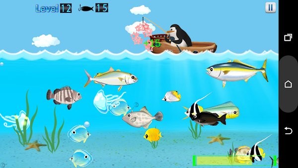 最近在手机上发现了一款挺有趣的钓鱼游戏,叫企鹅钓鱼。游戏里有各种各样的鱼可以钓,玩法简单,用手指点屏幕就能操作。每次只能钓一条鱼,不然收线速度会变慢。而且要小心水母,别让它影响你的成绩。