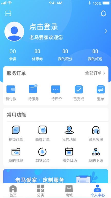 老马爱家一站式家庭服务app最新版为广大的居民朋友提供了便捷的家庭式服务,包含了保洁、维修、收纳、家电家居清洁等服务,帮你搞定生活中的各种琐事,让你畅享智能美好生活!