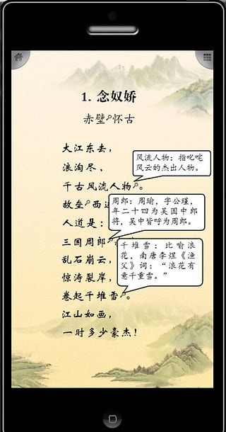 聆听经典,感受宋代大文豪苏轼的经典之作,在聆听与阅读中感受诗歌中蕴含的诗人感情,了解大诗人对生命的感悟,体验不一样的文学经典,软件提供大量朗诵音视频内容,喜欢古诗词的用户可以下载欣赏!
