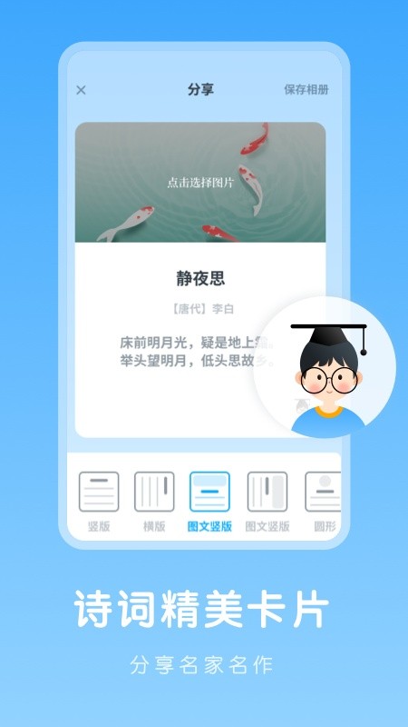 总的来说,这款软件不仅内容丰富,还能让学习变得高效又有趣。对于想要深入理解古诗词文化的中小学生来说,绝对是个不错的工具!我自己也觉得这样的学习方式比死记硬背有意思多了,说不定还能让孩子从此爱上古诗呢~