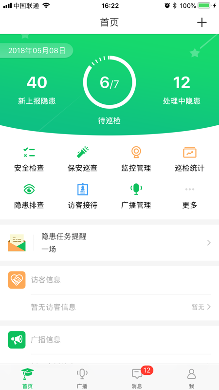 隐患排查、访客接待、广播管理等