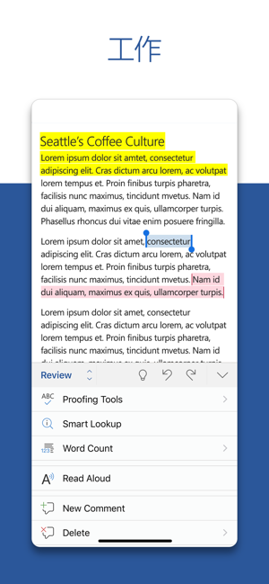 使用受信任的 Word 应用,可以快速轻松地创建、编辑、查看和与他人共享文件。使用来自 Microsoft 的强大文字处理应用,发送、查看和编辑附加到手机电子邮件中的 Office 文档。