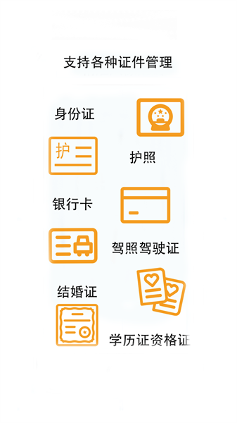 新增身份证,户口本,银行卡,驾照行驶证,学历证书,文件合同等证件夹。