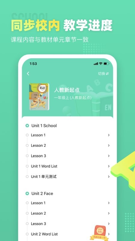 超好用超用的小学生英语教材同步辅导工具来了!包含校内同步动画视频课程、每日学习计划、学习工具,是专门针对小学生的自主学习智能教辅工具!