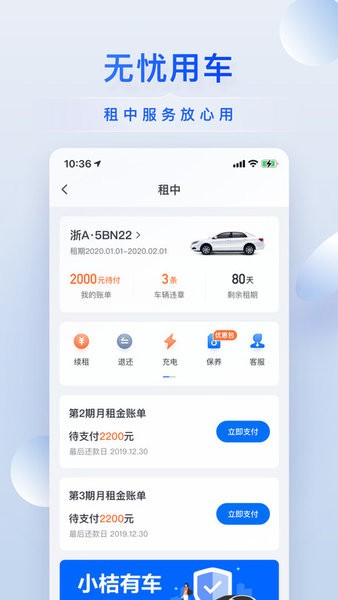 租车专属服务,充电维保出险一站式服务,租着开更省心;
