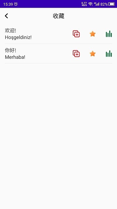 -- 选择复制后面的星标符号就会显示收藏成功;选择最后一个播放符号,软件就会按顺序自动播放全部单词;