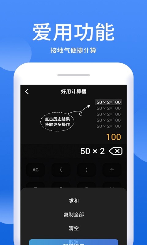 最让我觉得贴心的是它的界面设计,简洁清爽又不占内存,操作起来也很方便,完全不用像以前那样用那些笨重的大砖块计算器了。而且,它还支持复制公式和查看历史记录,省去了很多麻烦。