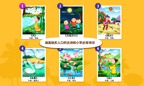 节奏练习通过优美的音乐配合诗词节奏游戏,在学习诗词的同时也能提升孩子的韵律感,一举两得。