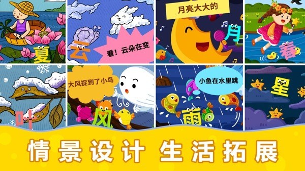 -- 有趣故事:通过识字游戏推进故事发展,强化记忆。