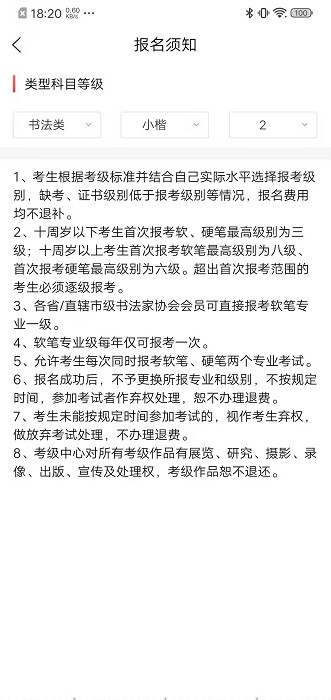 2.报名须知简单清晰解且容易浏览,可以分级分类别的进行查找。