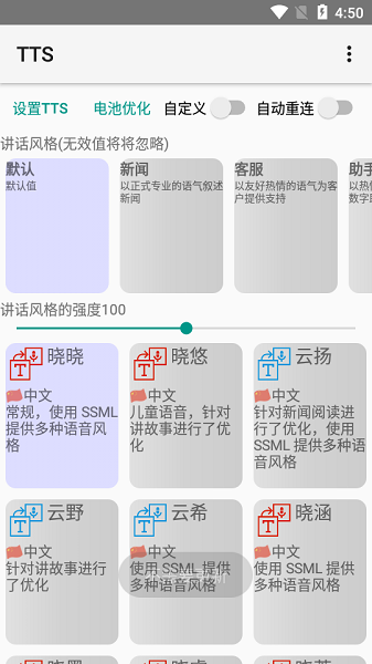 3、个性语音包,超多个性化的语音包,不同的播音风格等你来使用,个性定制。