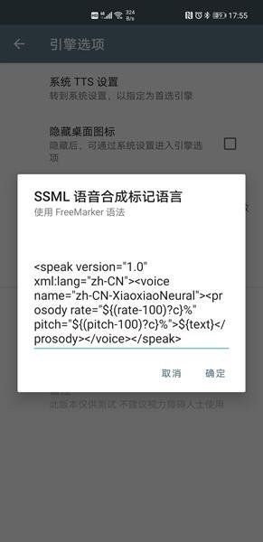 打开“设置”――“无障碍”――“文本转语音”――“首选引擎”――“大声朗读”――“SSML语音合成标记语言”