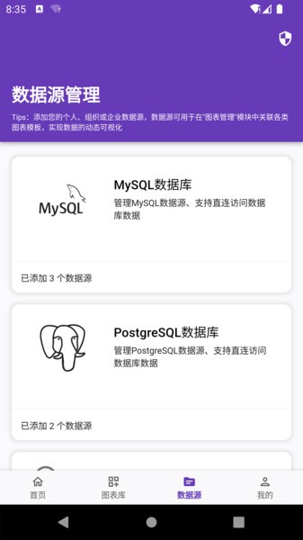 支持数据源添加(目前支持PostgresSQL及MySQL数据库)
