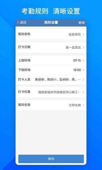 内藏强大功能:多种打卡方式,自由排班,节假日、加班设置;