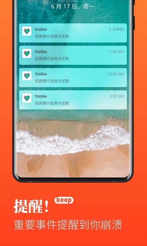 重要事项多次提醒,直到标记事件已处理为止,解救拖延症。