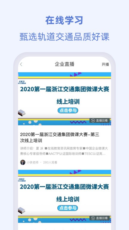 浙江交通学院app官方最新版能够查看最新的培训活动安排,可以看企业直播课程,热门新鲜课程一应俱全,在线学习超方便,满足不同的培训需求,学习项目丰富,在知识库可以查询和学习自己想了解的知识内容。