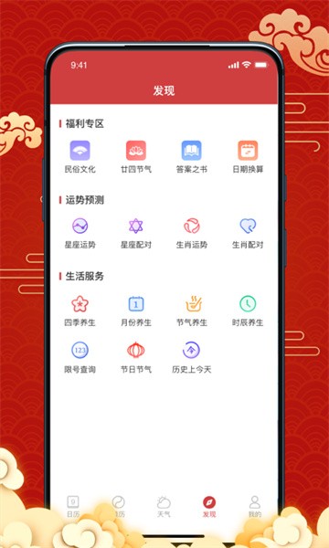 日历:黄历宜忌、节日节气、吉日查询、历史查询;