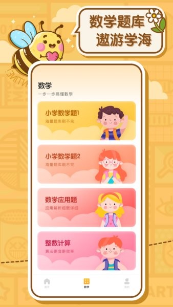 蜜蜂作业软件可以为用户带来更多的学习方式,在软件之中随时都可以对多个学科进行学习,无论是英语,还是数学都可以快速的提升成绩,海量的知识点可以让用户轻松学习。