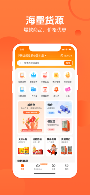 机柜主可在该App内进行选购货柜,柜主学院进行经营学习;也可远程操作售货机的运营状态,实时掌控售卖情况以及采购售卖的商品。为机柜主提供一站式的货柜运营服务,大大提高运营效率,节约运营成本。