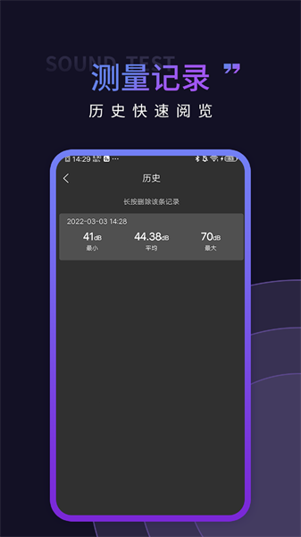 3、帮助大家随时随地测试你周边的声音大小,而且检测得到的数据非常的精准