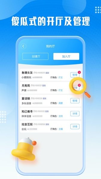 总的来说,厅管家既实用又安全,界面友好操作便捷,适合各种规模的语音平台使用,是个不错的管理工具。希望他们未来能继续优化功能,推出更多实用的服务,为行业带来更多便利!