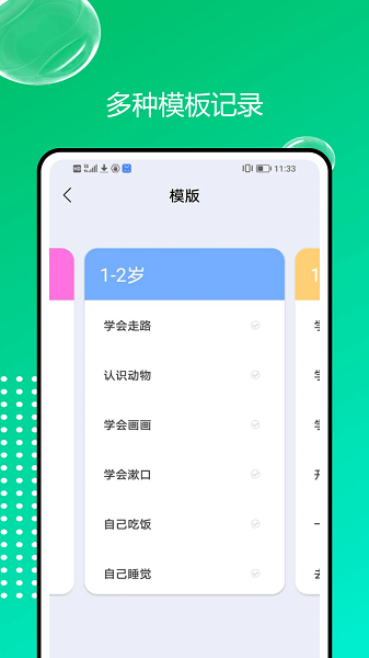 提供了许多的记录末班,选择对应的模板以后,就能快速的记录宝宝的成长内容;