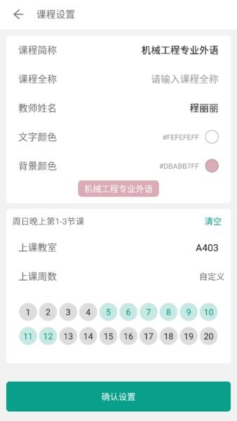 5.可设置每节课上课的周数、如全部、单独、双周、指定周