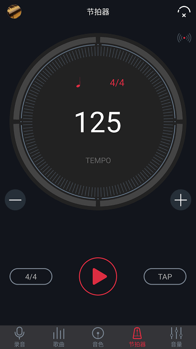 4、点击节拍器,用户可在显示的界面中进行节拍的加减操作