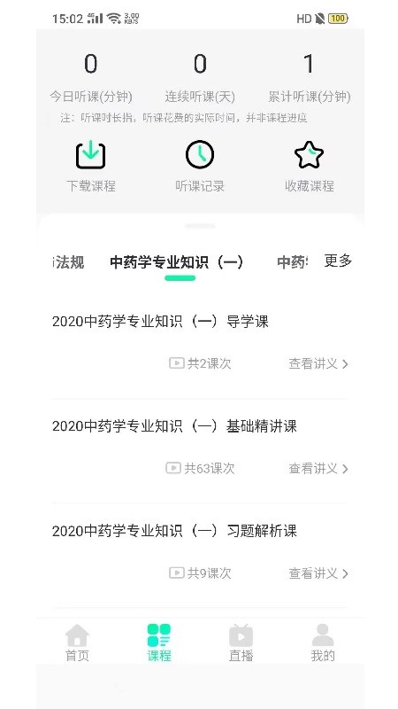 进入课程版块,查看自己的课程学习信息,一键下载和收藏各个课程,了解自己的听课记录