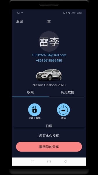 1、一旦邀请被接受,该用户即可在您设定的时间段内享有您为其设定的权限来访问和控制你的车辆;