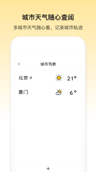 萌萌哒像素风格设计,简洁直观又不失趣味,为您带来不一样的视觉体验。清新的界面,文艺的氛围,让查看天气也成为一种享受。