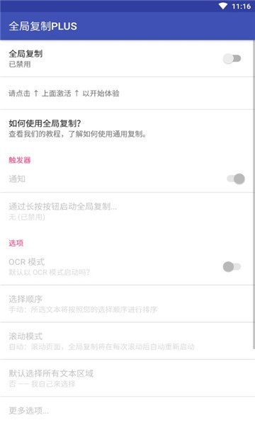 全局复制plus手机版是提供文本内容复制功能的应用工具,界面简约,没有广告骚扰,还支持全局复制,可以从图片、文档中扫描提取文本文字内容,完全免费体验,操作简单易上手,一键激活全局复制即可使用,满足用户的需求!有需要的伙伴可不要错过!