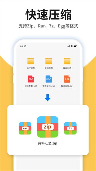高效的手机压缩文件及文件便捷管理软件,汇集了文件压缩、文件管理、文件分类,文件编辑等小工具。不仅支持文件压缩成想要的格式,还支持对压缩包设置密码进行加密。