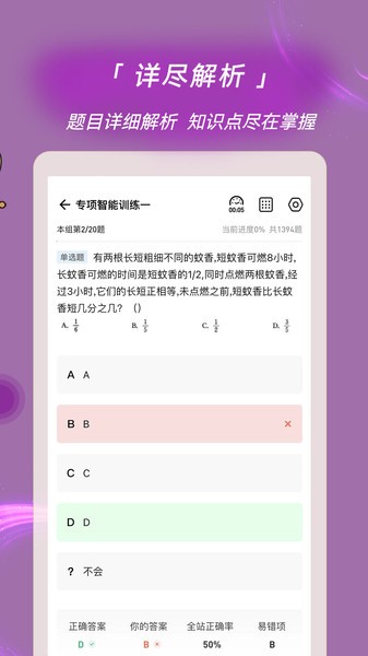 软件从用户体验、题库、解析、智能分析、错题巩固等多个环节优化,提升你的通关率。