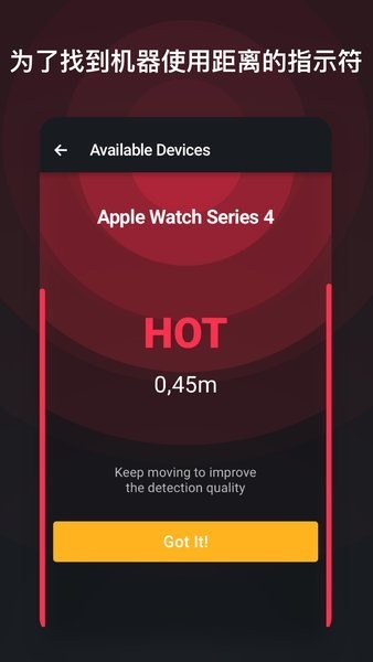 为了帮助您找到丢失的蓝牙设备,您将看到冷热指示器,让您定位蓝牙设备的位置。