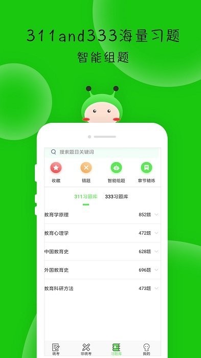 1、智能组题练习,通过智能组题的话用户可以对随机的题目进行练习而检验对各个考点的掌握。