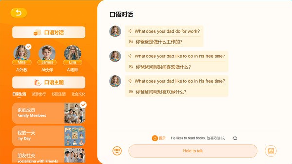 强大的AI问答功能随时待命,解答孩子在学习过程中的各种问题。通过即时反馈和指导,帮助孩子更好地理解和掌握英语知识,打造无缝衔接的学习体验。