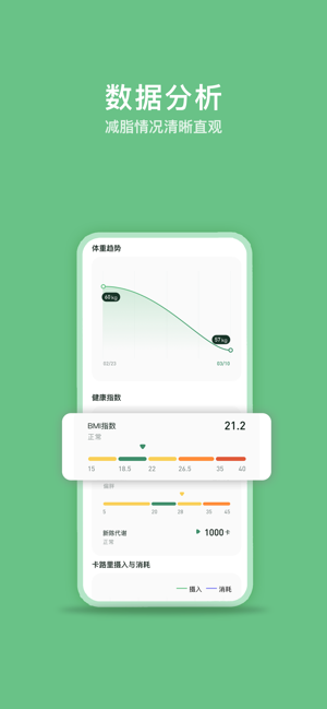 随时随地记录你的早餐、午餐、晚餐、饮水量、零食、体重,摄入热量和消耗一目了然。