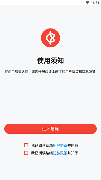 打开结绳后,首次进入会提升让您同意权限,请仔细阅读后同意