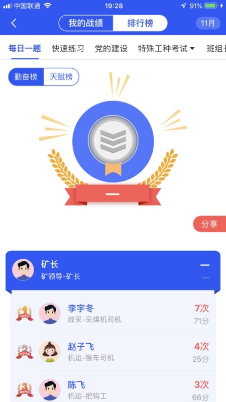 4、题目收藏、我的战绩、矿长信箱、职工建议