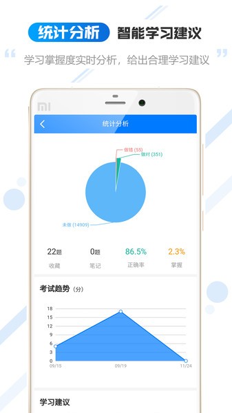 软件亮点多多:章节练习帮助逐点深入掌握知识点,精华热题和模拟考试则能高效备考,真实检测学习效果。错题记录和笔记功能方便复习,数据分析还能提供智能建议,助力精准提升。