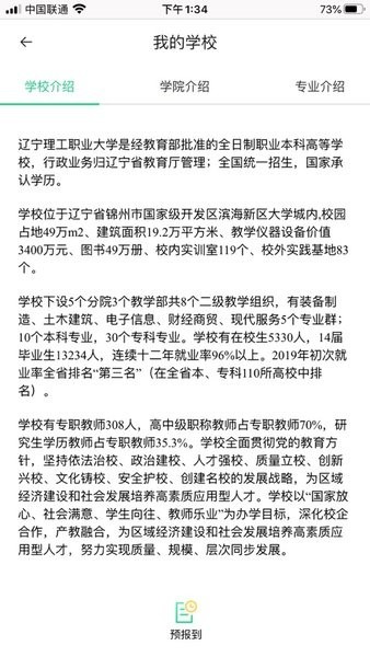 2、学生可提前预约现场报道,可查看学校具体信息。