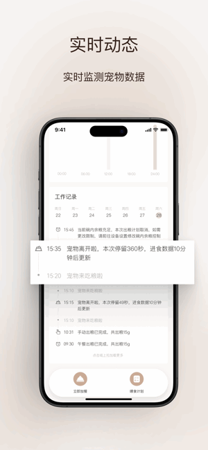 提前设置好喂养计划,让您的宠物准时进餐、防止宠物挑食暴食。